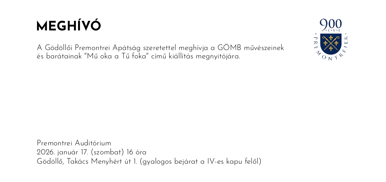 - A Gödöllői Művészbarátok (GÖMB) „Mű oka a Tű foka” című kiállítás megnyitója január 17-én szombaton lesz a Premontrei Auditórium galériáján.